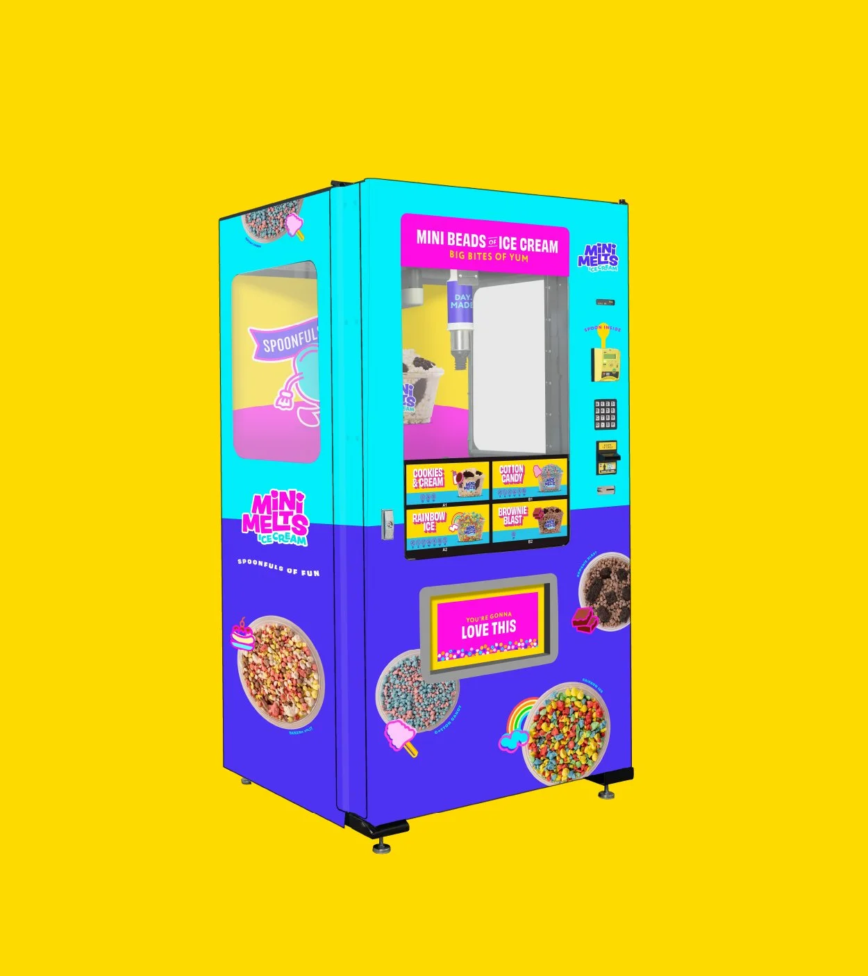Their name may be mini, but their personality is anything but: a bold new logo with blocky custom letterforms, packaging that beckons any sweet tooth with bright flavor cues and playful iconography, and vending equipment that stands out in any environment.
